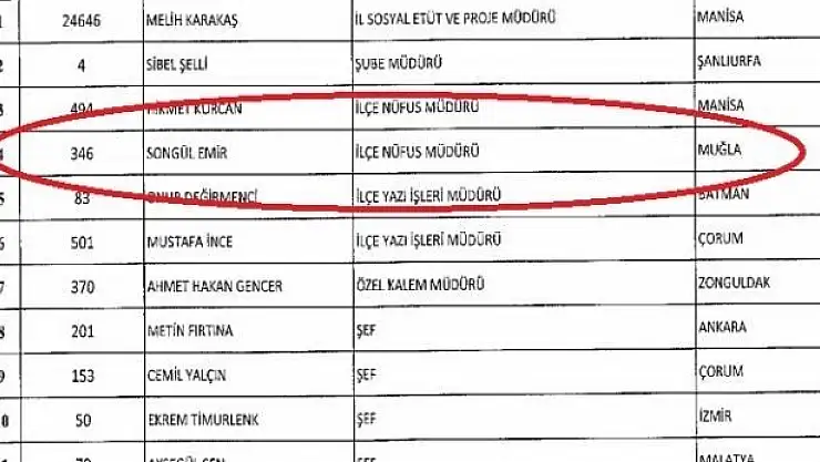 Muğla İl genelinde kamudan ihraç edilenler şöyle: