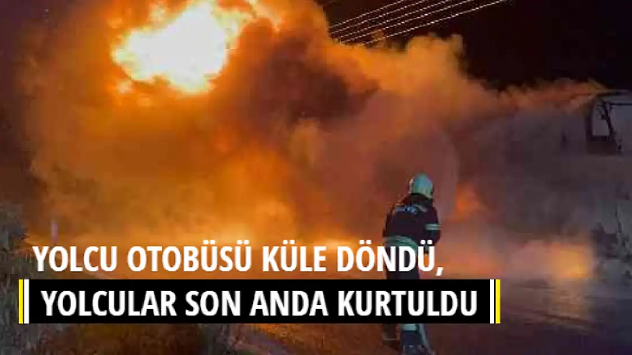 Muğla'nın Milas ilçesinde seyir halindeki bir yolcu otobüsü çıkan yangında küle dönerken, yolcular son anda araçtan inerek olayı yara almadan atlattı.