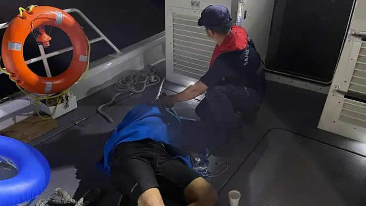 Muğla'nın Datça ilçesinde yasa dışı yollardan yüzerek Yunanistan'a geçmeye çalışan düzensiz göçmen yorulunca yardım istedi.