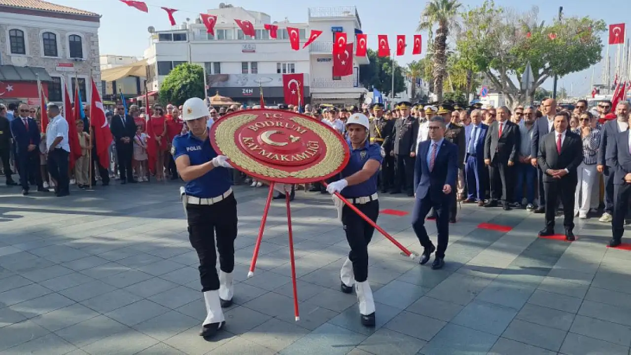 Muğla'nın Bodrum ilçesinde 30 Ağustos Zafer Bayramı kutlamaları, sabah saatlerinde düzenlenen törenle başladı.